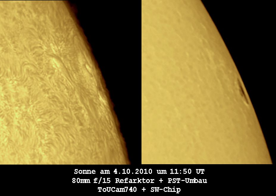 2 Wochen später wurde ein kleiner Fleck am Sonnenrand gesichtet. Protis gab es an diesem Tag nicht.