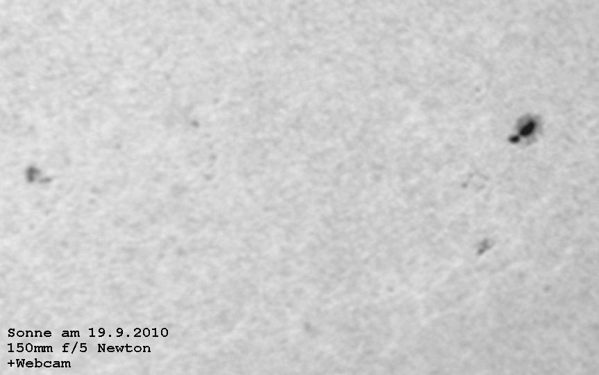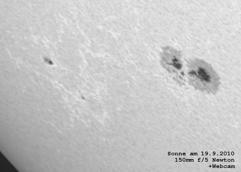 gab es einen schönen Sonnenfleck der mit einem 6 Zoll Newton und einer Webcam fotografiert werden konnte