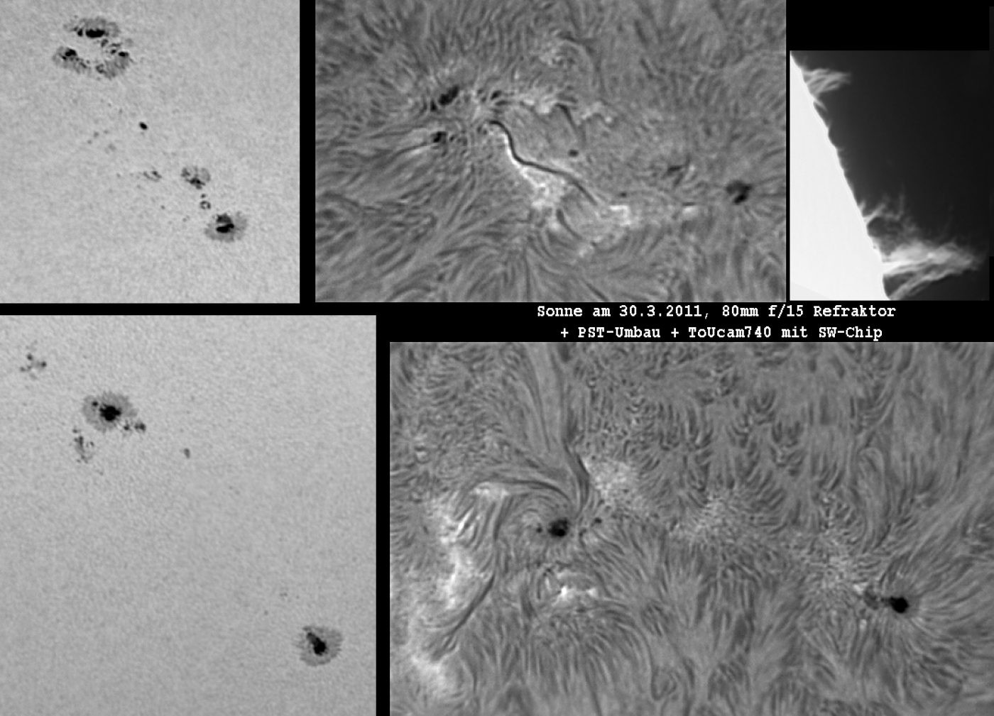 Neben visuellen Aufnahmen wurden die beiden Gruppen auch im H-Alpha fotografiert so das