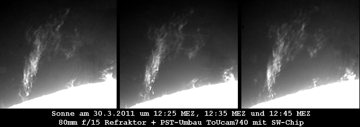 Die Animation oben zeigt die Protuberanz im Abstand von 1min je Bild.