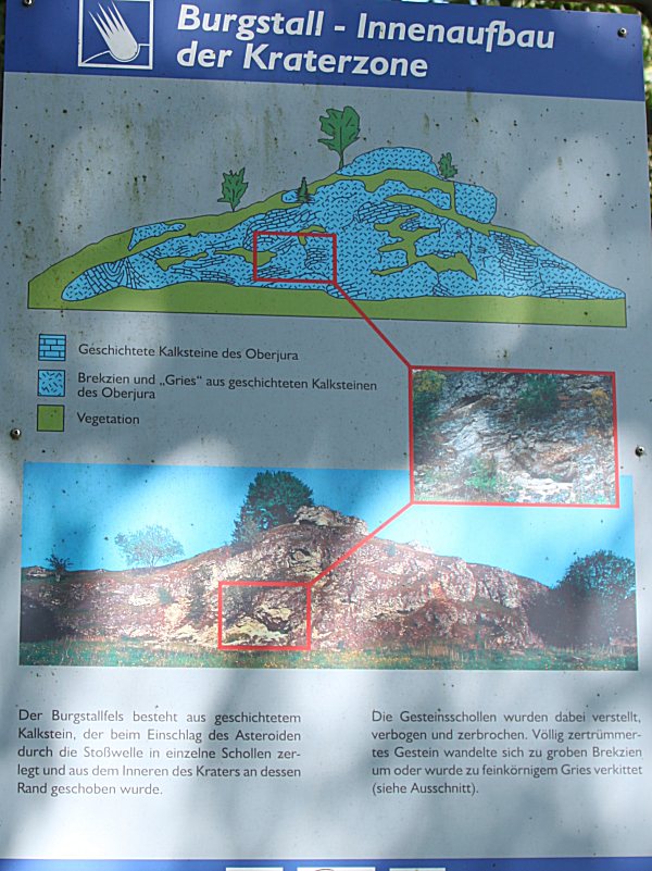 Am Rande des Talkessels gibt es einen alten Steinbruch in dem das Impaktgestein offen zu Tage tritt.