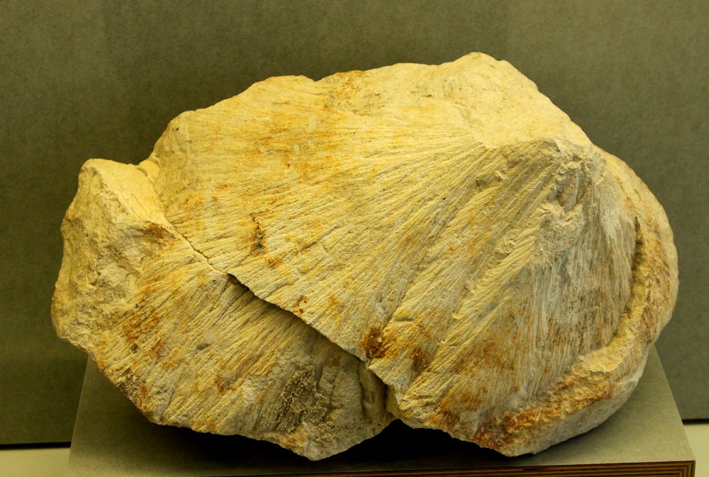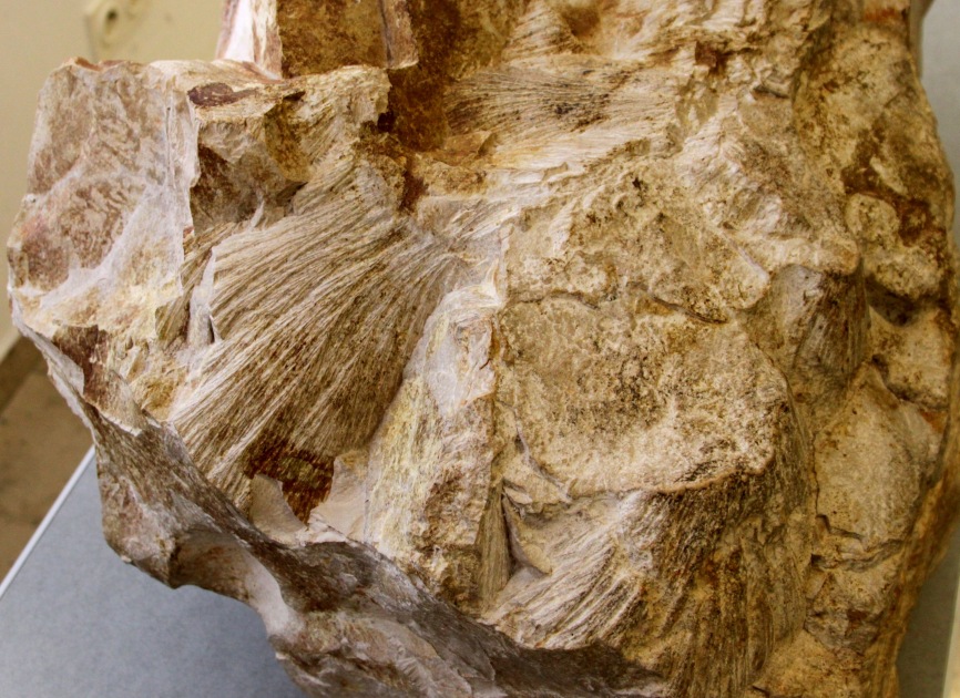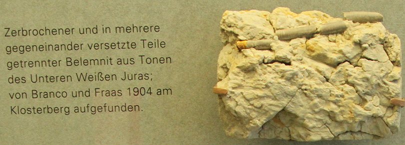Ein weiteres Indiz sind zerrissene Versteinerungen wie diesen Belemiten