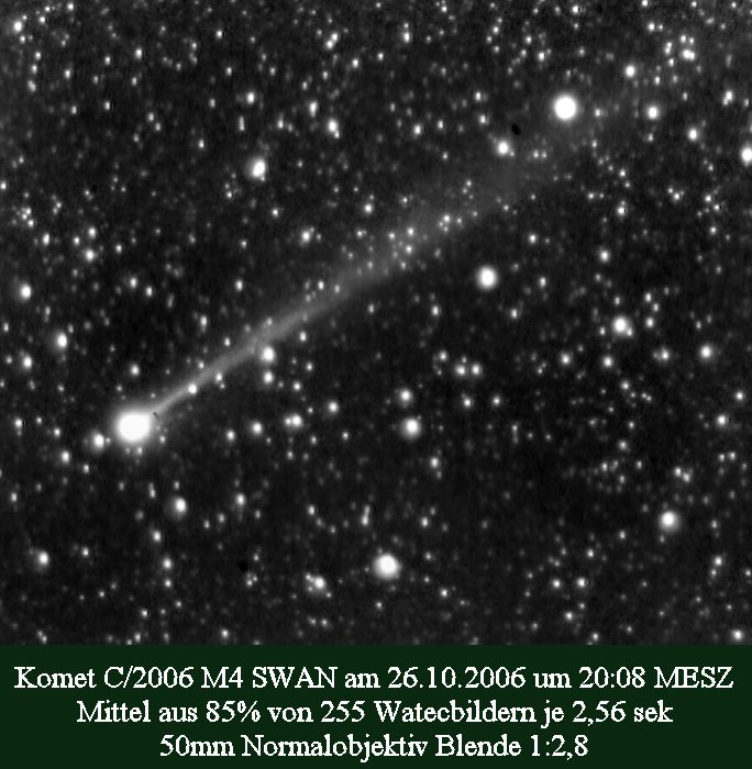 Als erstes wurde der Komet mit einem 50mm Normalobjektiv aufgenommen,