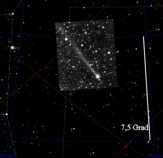 Die fotografische Länge auf dieser Aufnahme beträgt mind. 4,5 Grad.