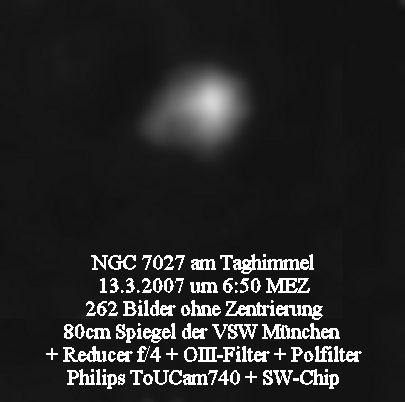 Der 2.Versuch fand unter wesentlich günstigeren Bedingungen statt. NGC7027 wurde diesmal