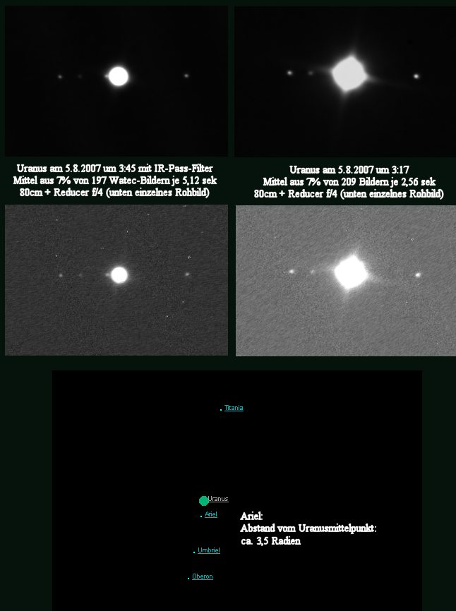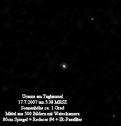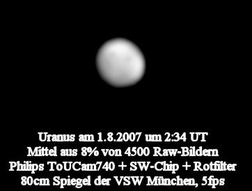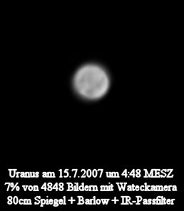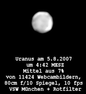konnte Uranus durch Polfiltereinsatz und die Mittelung einiger Hundert Aufnahmen erfolgreich herausgearbeitet werden.
