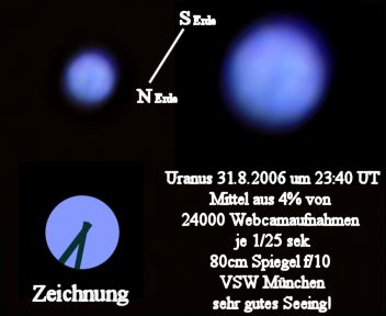 Bei der Orientierung der obigen Aufnahme ist zu bedenken, dass der Uranusachse
