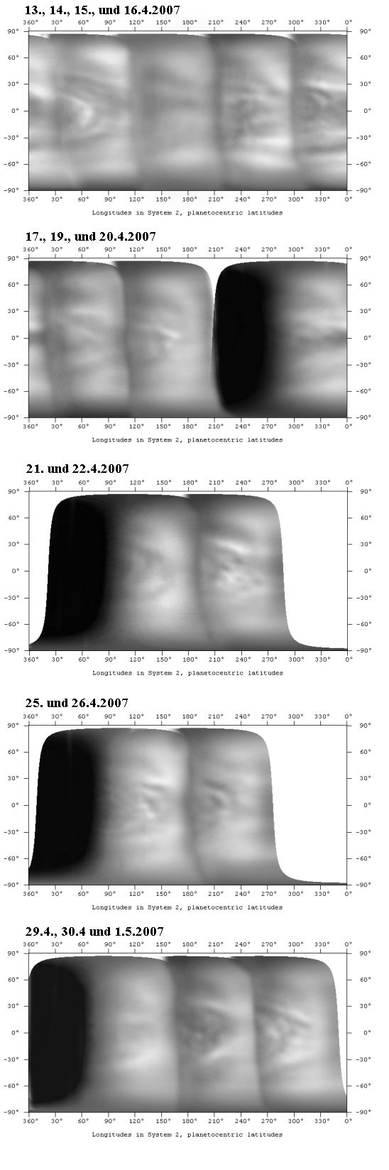 Vom 9.4. bis zum 17.4. gelang eine lückenlose Reihe von Venusfotos zu erstellen.
