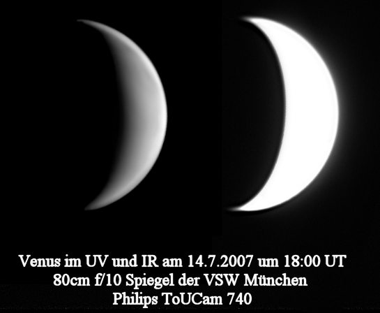 gearbeitet werden. Auf der schmalen Venussichel waren im UV nur noch mit Mühe