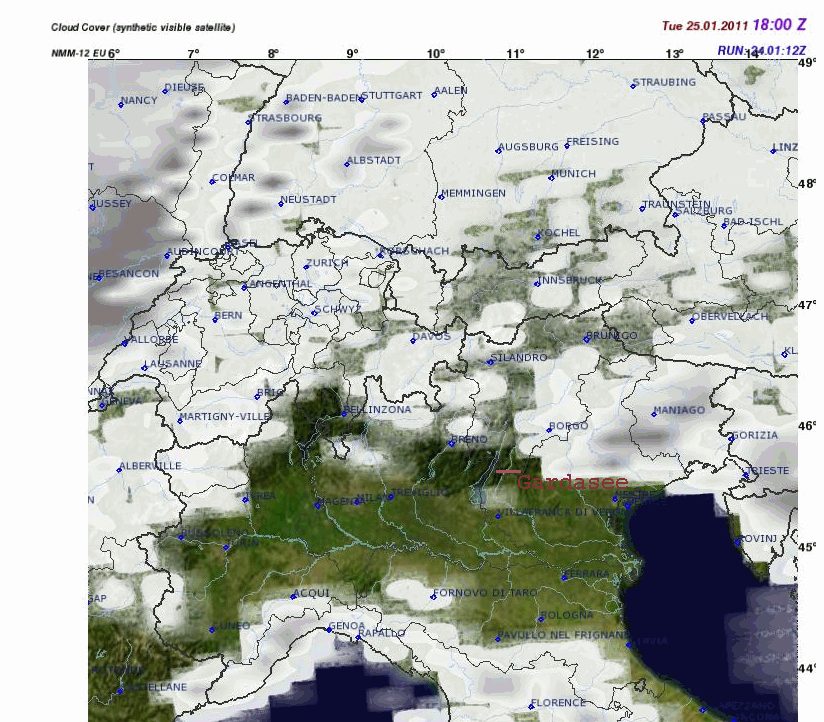 zwischen Gardasee und Mittelitalien nur gelegentliche Wolkenfelder