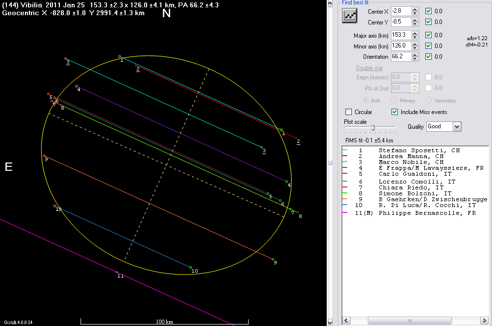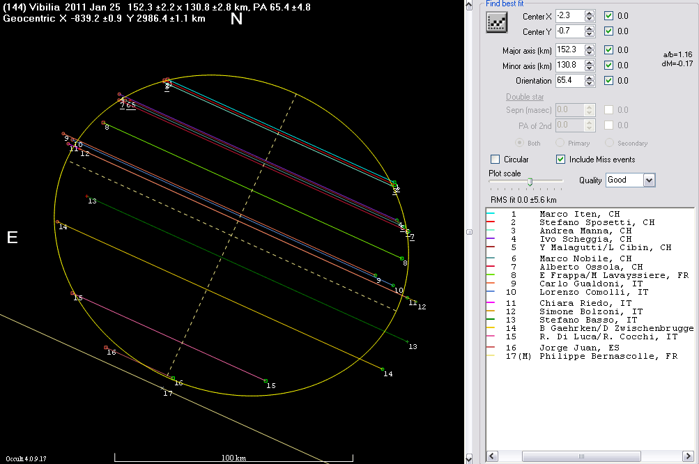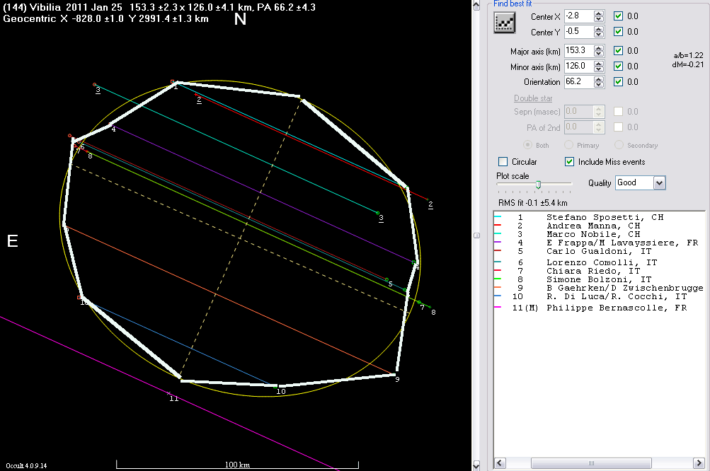 Aus den Sehnen läßt sich für Vibilia eine elliptische Form mit einem Durchmesser von 153x126km ableiten.