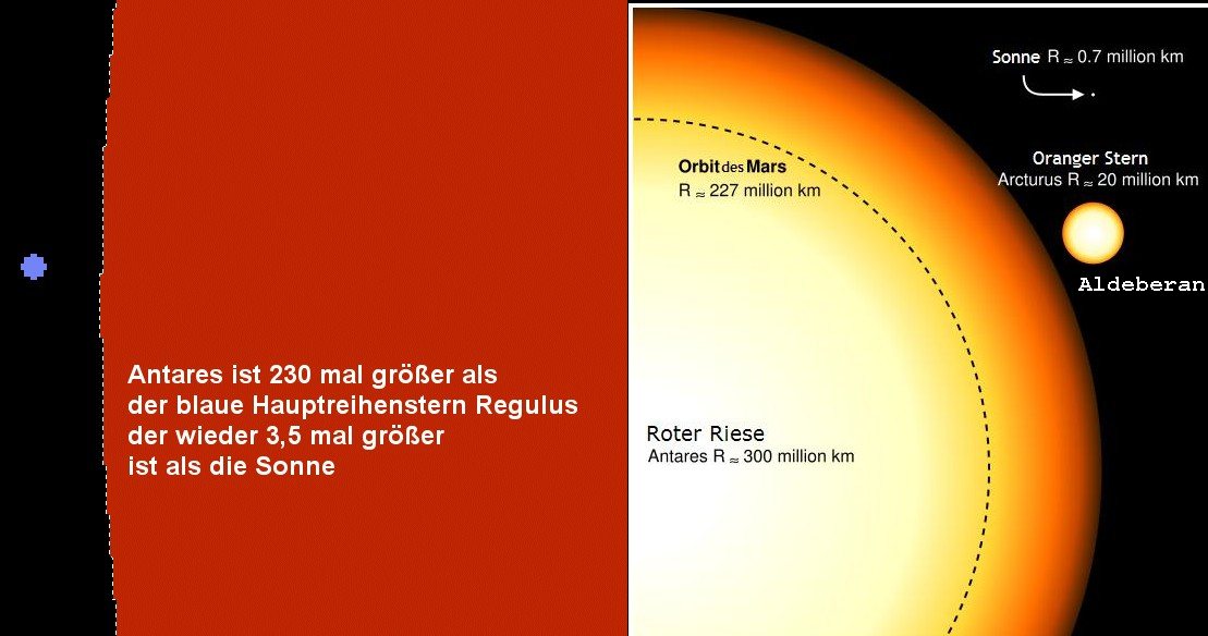 hintereinander. Antares ist ein Roter Riese mit einen so großen Durchmesser