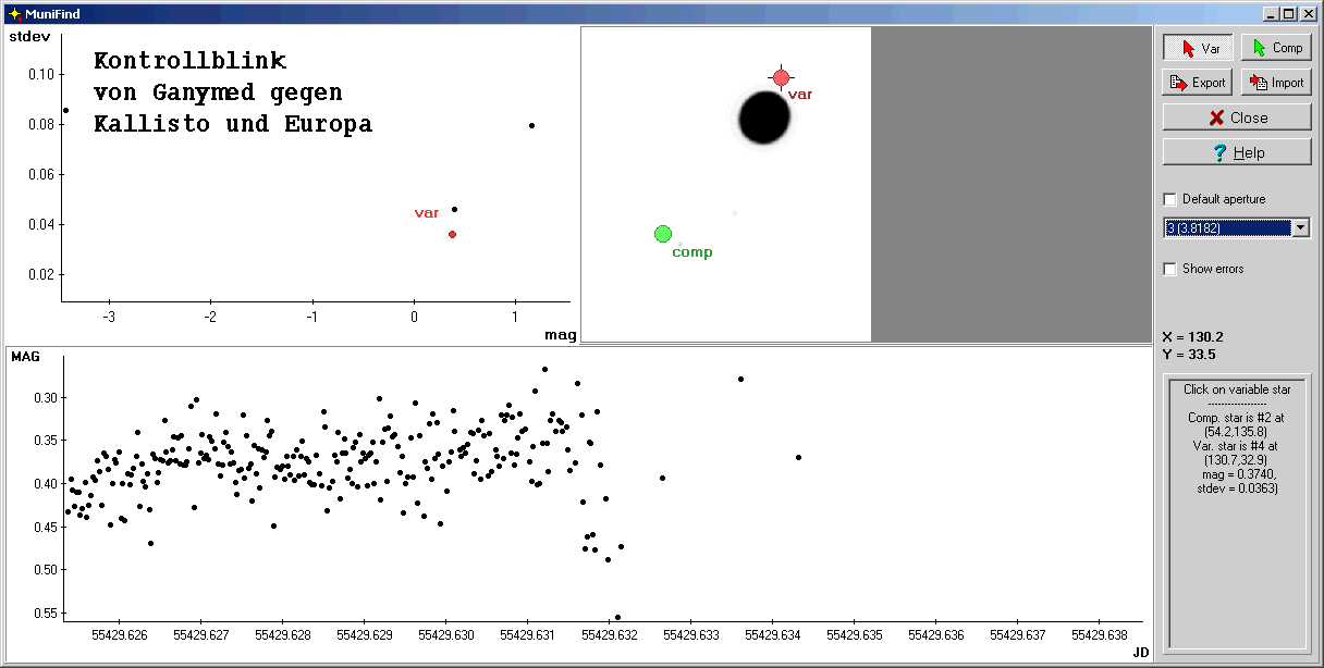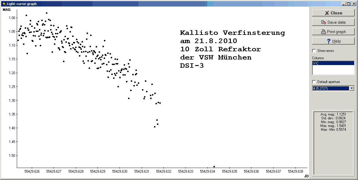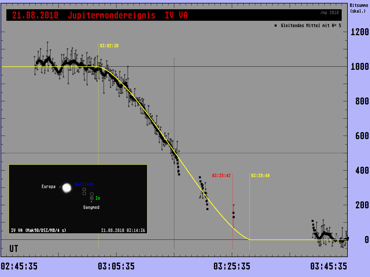 Bemerkenswert ist der Nachweis von Kallisto der am 21.8.2010 zwischen 3:36 und 3:40 gelang.