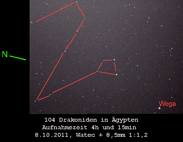 Die Lage des Radianten unweit des Drachenkopfes ist gut zu erkennen