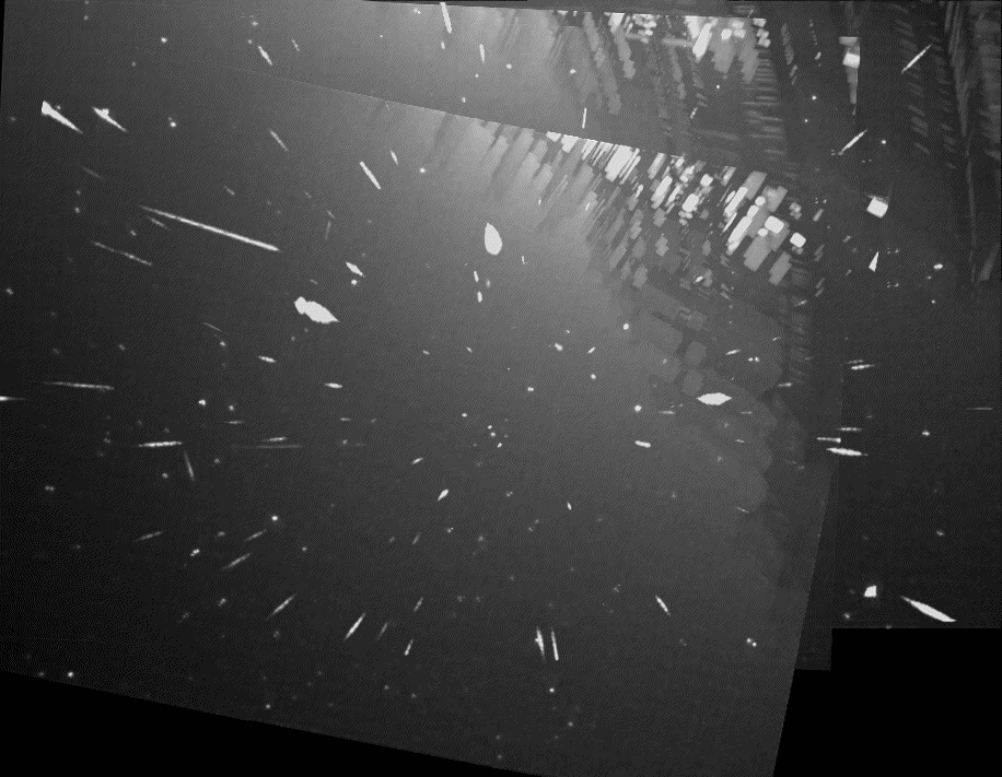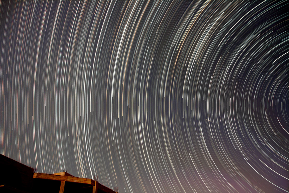 Heraus kam eine bemerkenswerte Strichspuraufnahme auf der sich 2 Meteore finden lassen.