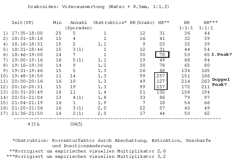 Meteore zeigt, passt bei den eher schwachen Drakoniden besser ein Faktor von 3,2.