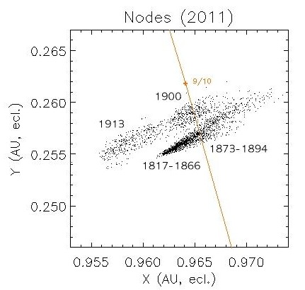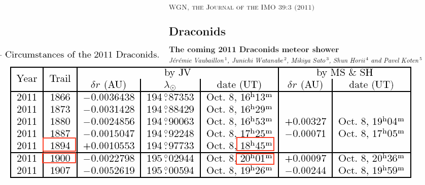 die um 18:45 UT den Zusammestoß mit einem Trail von 1894 erwarten lies.