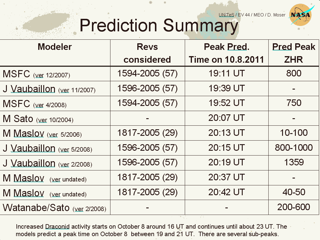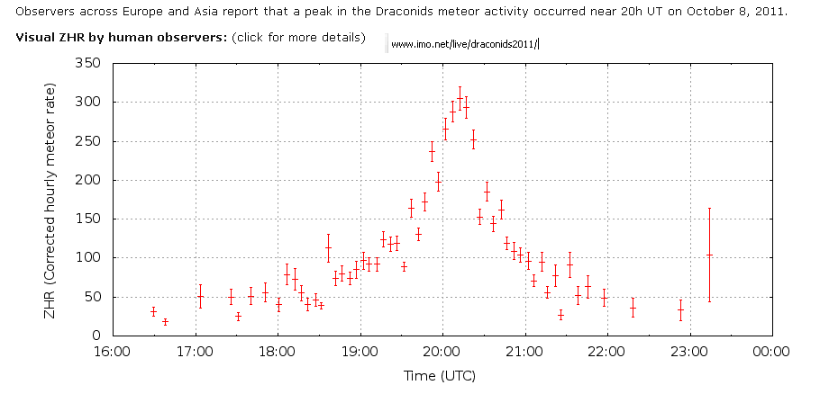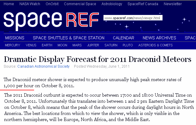 Für den 8.10.2011 wurde ein besonders starkes Maximum der Drakoniden vorhergesagt.