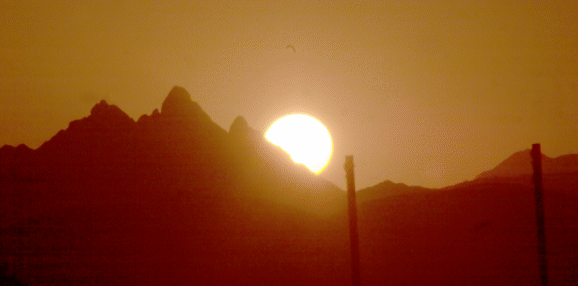 Bemerkenswert ist die starke Verformung des Sonnenrands. Man kann so