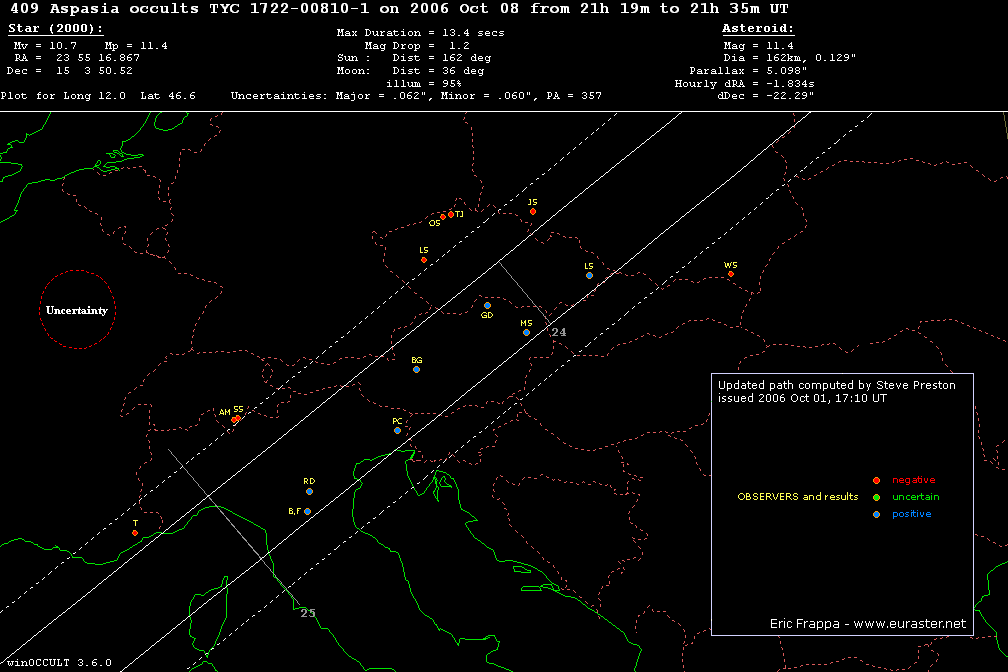 Durch Sternverfinsterungen kann man den Durchmesser exakt bestimmen.