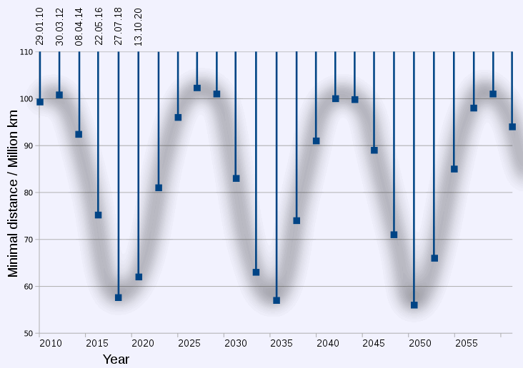 Marsopositionen haben einen wechselnden Abstand und daher eine sehr unterschiedliche Qualität.