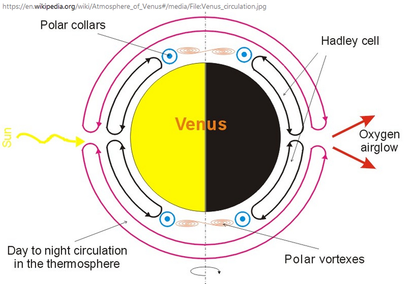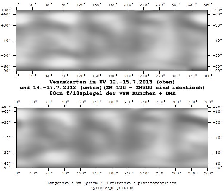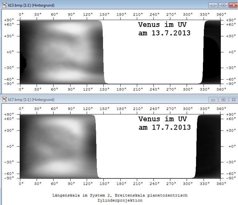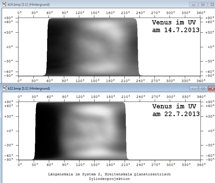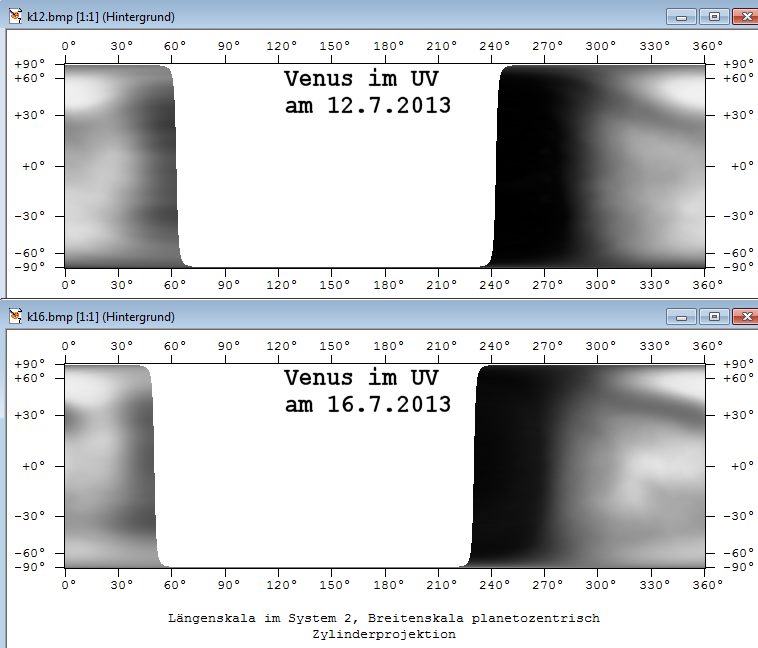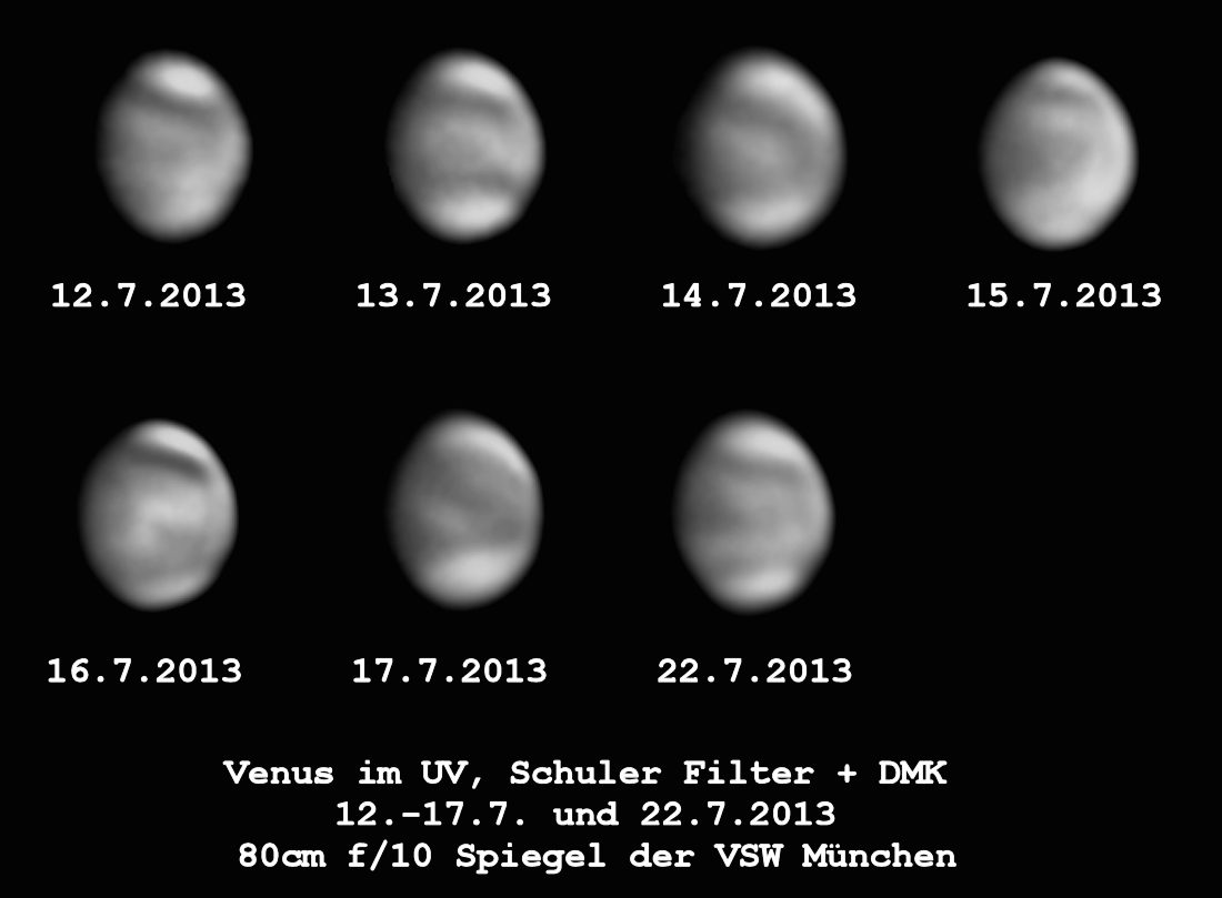 Die UV-Wolken der Venus bewegen sich mit 85 Grad pro Tag um den