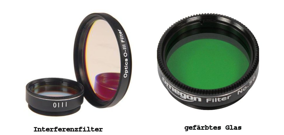 Es gibt sie als Interferenzfilter oder als gefärbtes Glas: