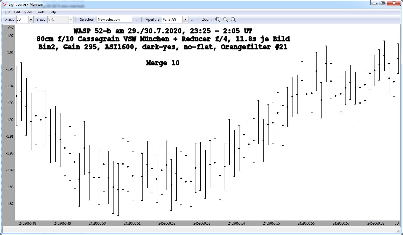 Vergleichssterne wurde am 29.7. ein Nachweis probiert. Ausschlaggebend