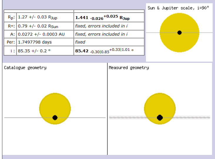 Der Zielstern ist deutlich kleiner als die Sonne und der Planet etwas