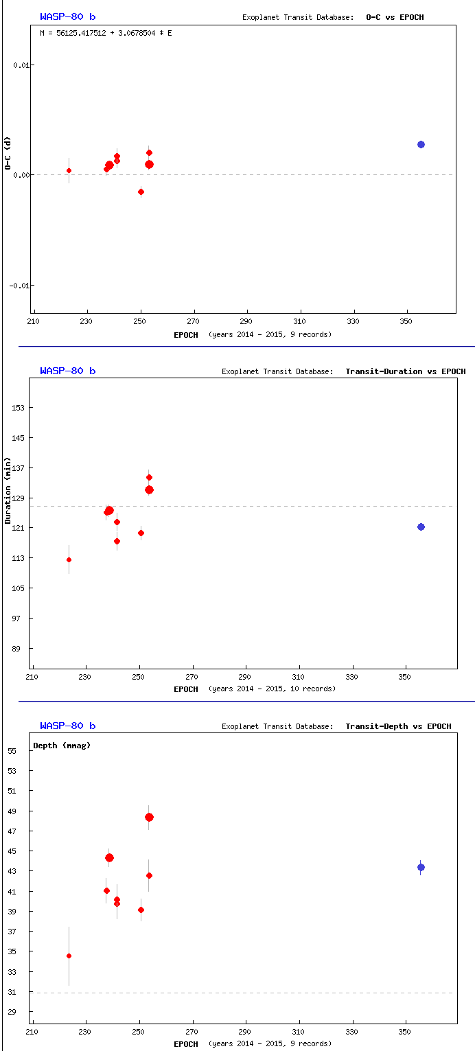 Transitdauer und Periodendauer zeigen eine auffällige Schwankung, die eine weitere Untersuchung dieses Exoplaneten interessant machen könnten.