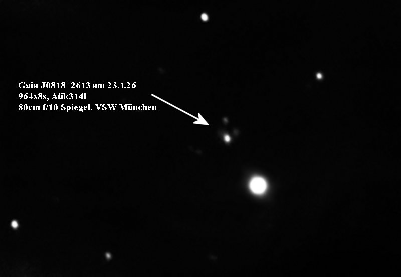 Bei +70 Grad Deklination sollte das Objekt mit dem 80cm Spiegel der VSW