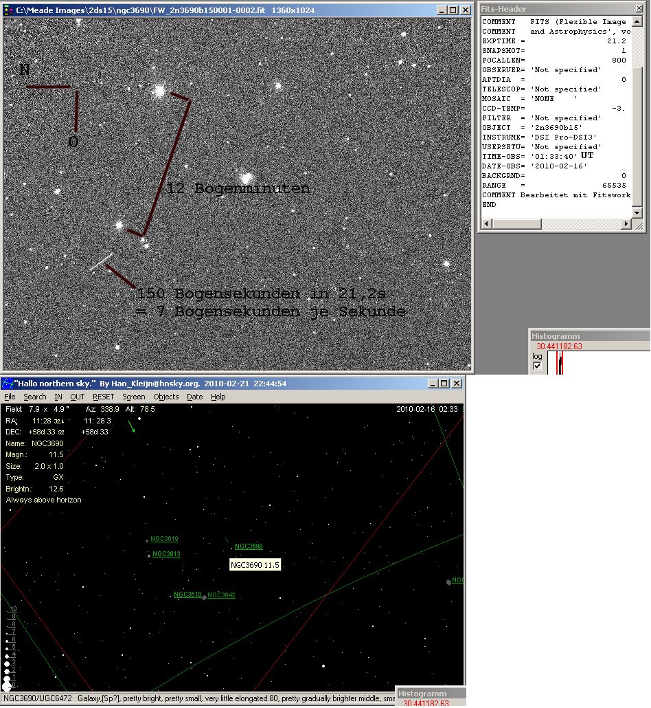 durchs Gesichtsfeld. Es wurde eine Geschwindigkeit von 7 Bogensekunden