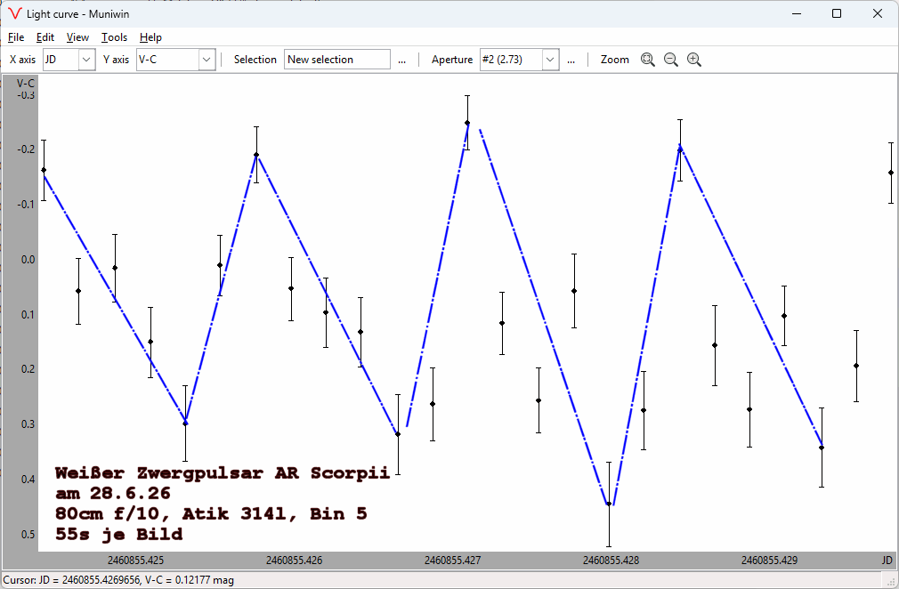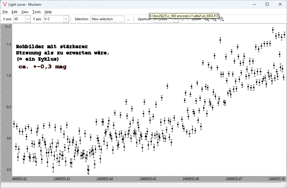 was mit der Pulsation am besten zu erklären ist. (Der Vergleichsstern hat
