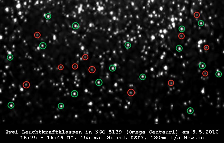 Auffällig ist bei Omega-Centauri das es 2 Gruppen von Sternen mit