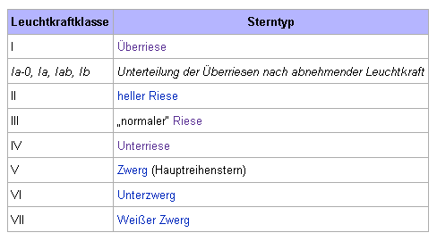 Bei denn beiden Helligkeitsgruppen handelt es sich um Überriesen und Unterriesen.