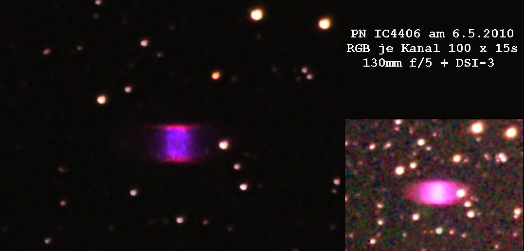 IC4406 auf der Liste. Mit 100x36 Bogensekunden Durchmesser und 10.1 mag