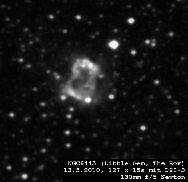 Ein weiterer heller Südhimmel-PN ist NGC6445. Er ist zwar prinzipiell auch in Europa gut sichtbar,