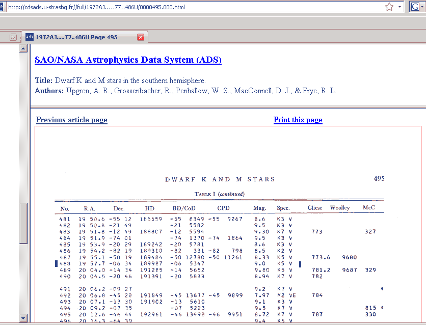 gearbeitet wurde. Er ist als Nummer 488 in einer Liste von Upgren et.al