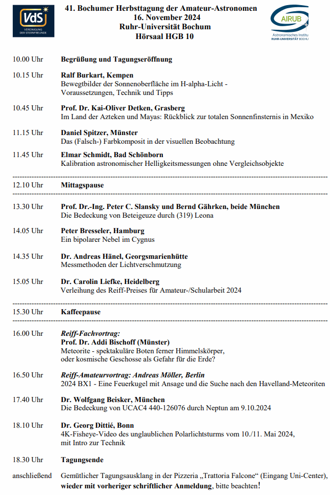Am Samstag den 16.11.24 ging die Bochumer Herbsttagung in die 41.ste
