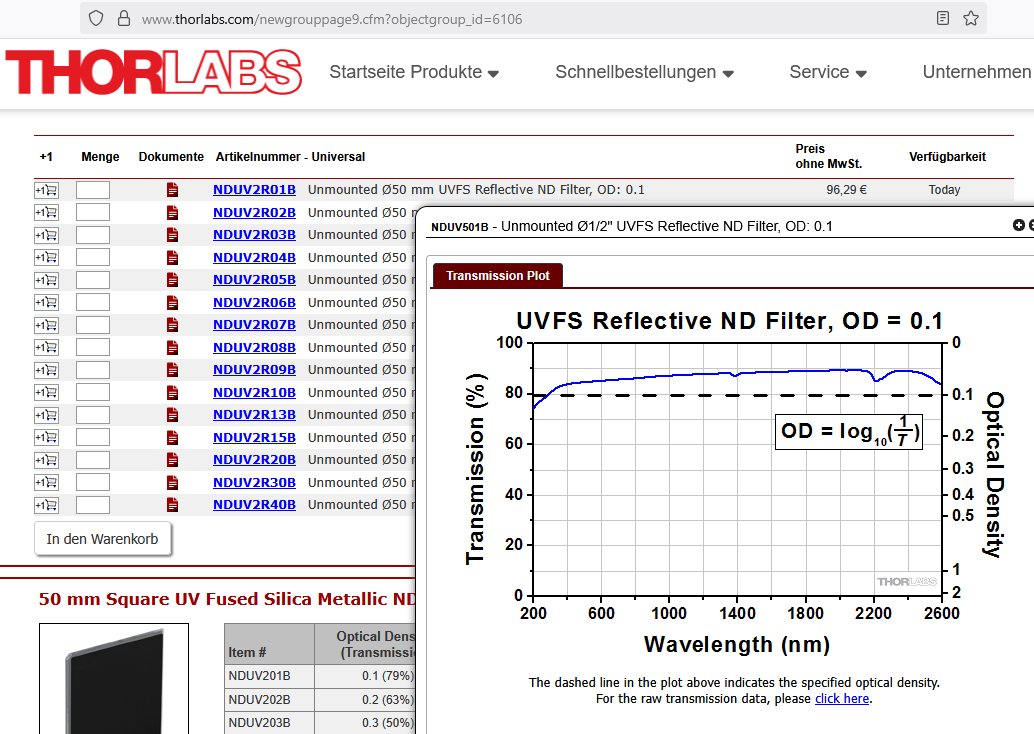 bestellt, das bis runter auf 200nm eine maximale Transmission bietet.