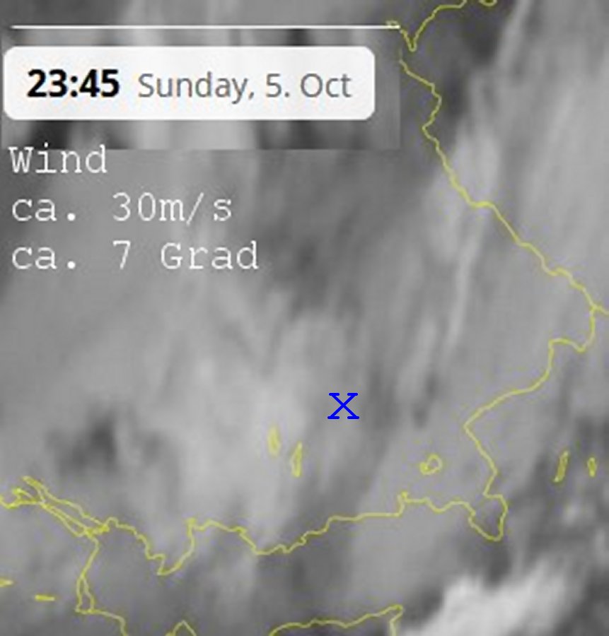 Nacht recht windig und das Satellitenbild zeigte, dass zu dem Zeitpunkt