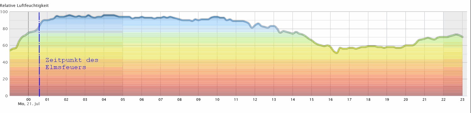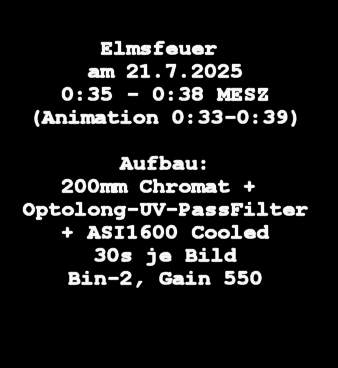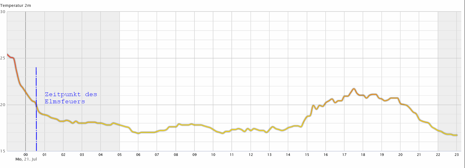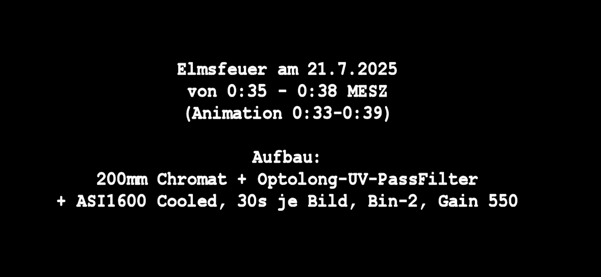Das erste Elmsfeuer vom 20/21.7.25 dauerte nur 3min, also 6