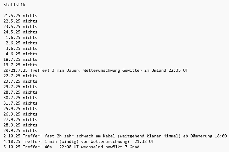Erst in der Nacht vom 30/21.7.25 gab es einen Treffer!