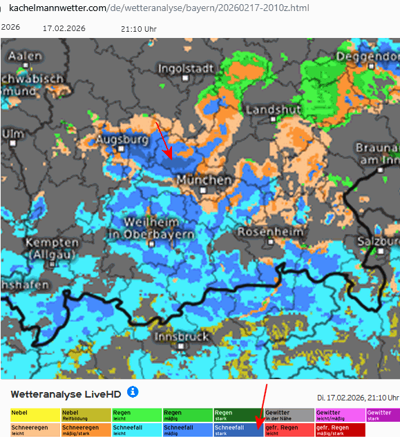 17.2.26 ist erst Nummer 4. Erneut zeigt das Wetterradar kurz vor