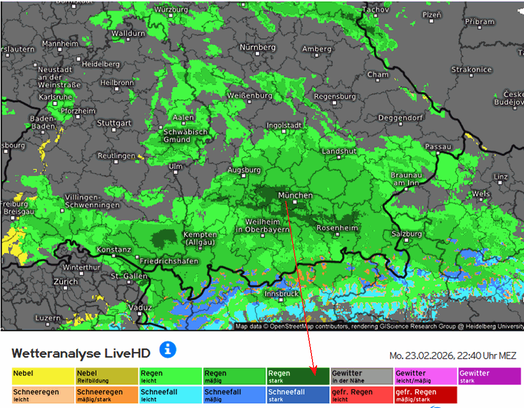 München ein starkes Niederschlagsgebiet.