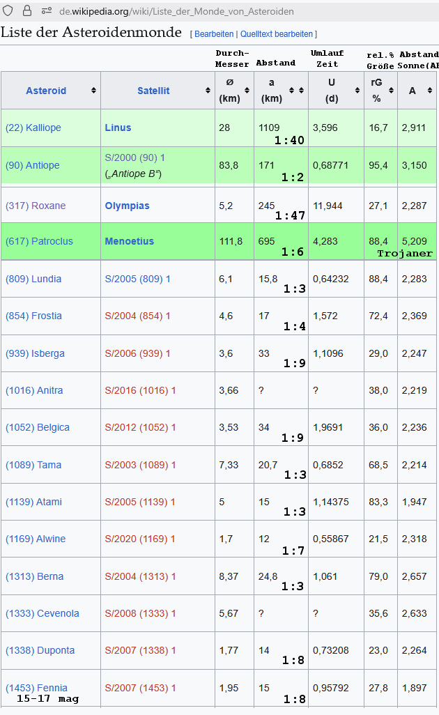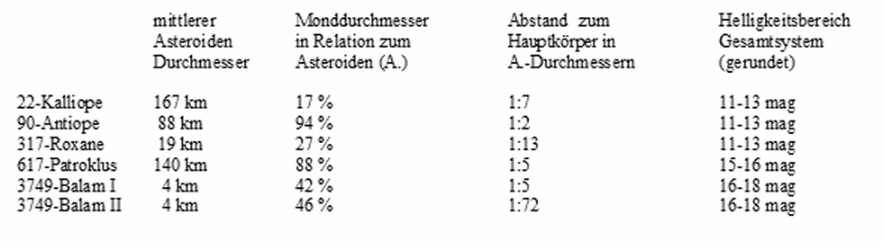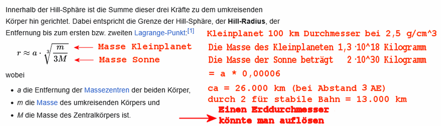 Theoretisch wird der mögliche Abstand eines Kleinplanetenmondes