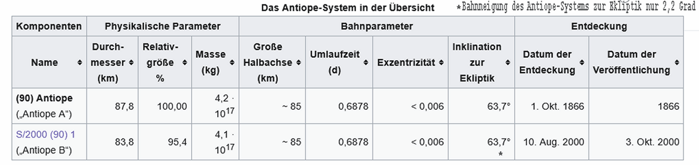 Gut erforscht ist 90-Antiope: