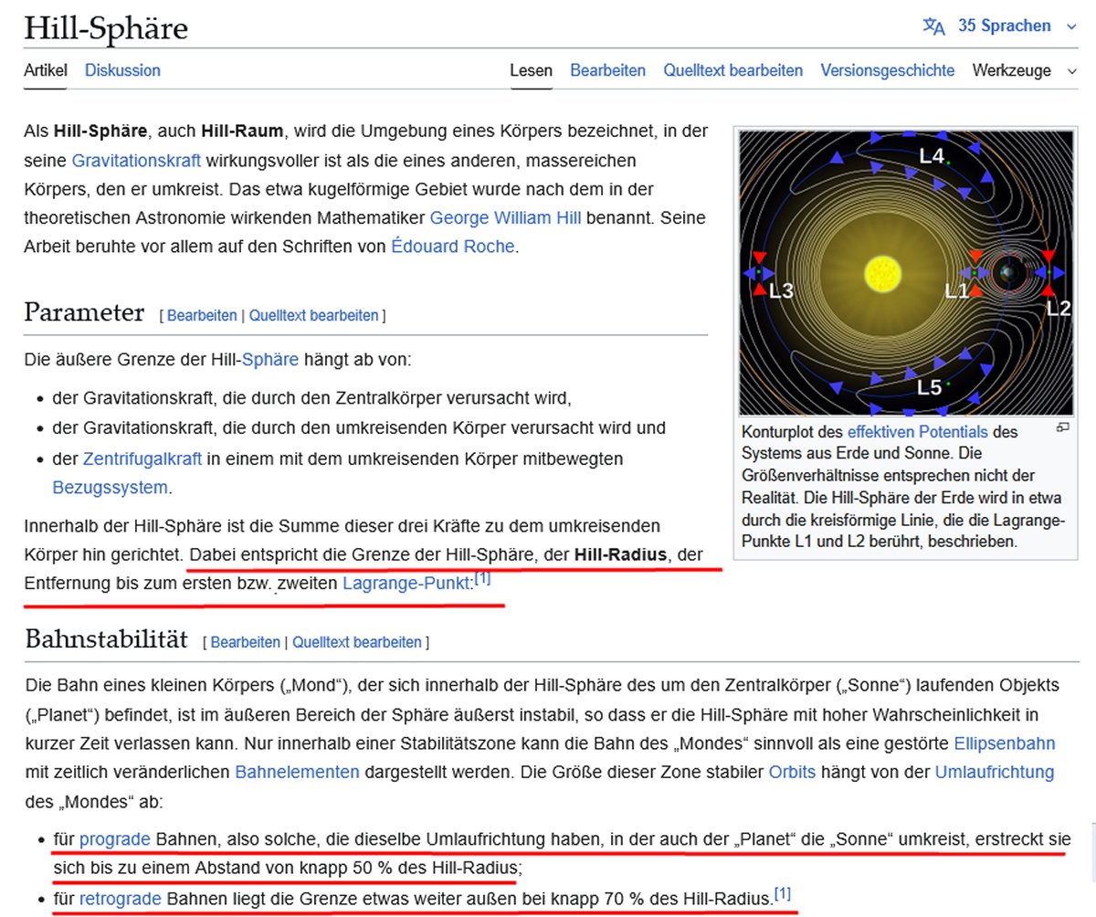 durch die Hill-Sphäre definiert.