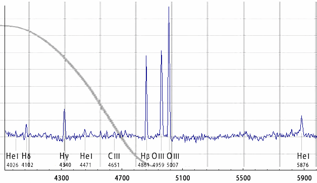 der Filterkurve des Omegon-47 liegt noch die Linie des H-Gamma, die