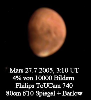 Mars hat mit ca. 20 Bogensekunden im Jahre 2005